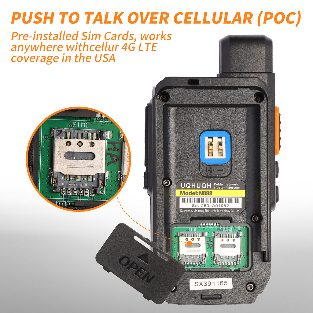 4-Pack 4G Walkie Talkies with SIM Cards-Unlimited Range Global Coverage-1 Year Free Data Plan-Clear Two-Rechargeable PTT Push to Talk Over Cellular Radio Long Range(N888)