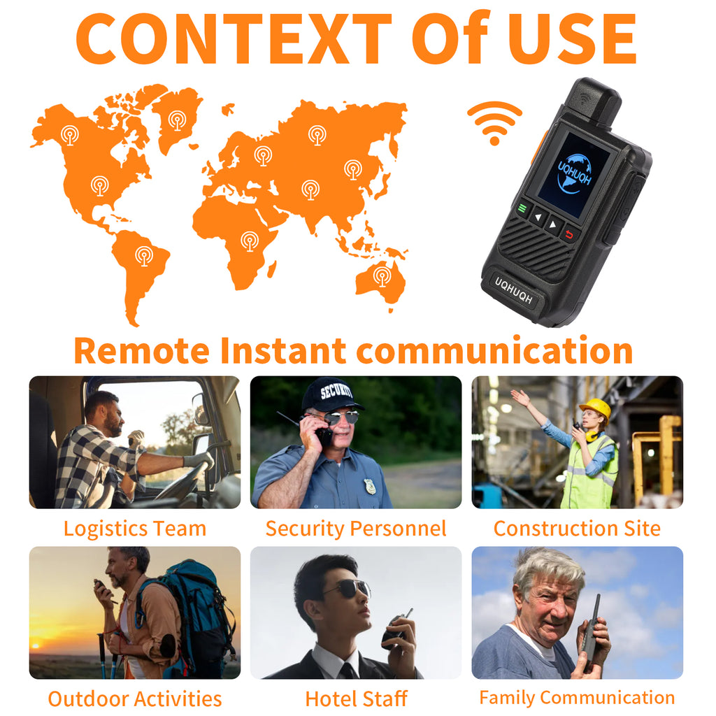 - Unlimited Global Range with 4G Stay connected worldwide with 4G network coverage—no distance limits like traditional walkie-talkies. Perfect for travel, construction sites, and outdoor adventures.